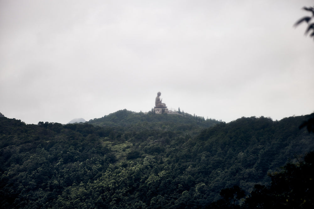 After finishing their ascent, runners waited in the storm for everyone else to make it up before starting the precarious descent from the summit to Ngong Ping, which hosts the sacred Tian Tan Buddha (the Big Buddha) you can barely make out behind the wet haze.