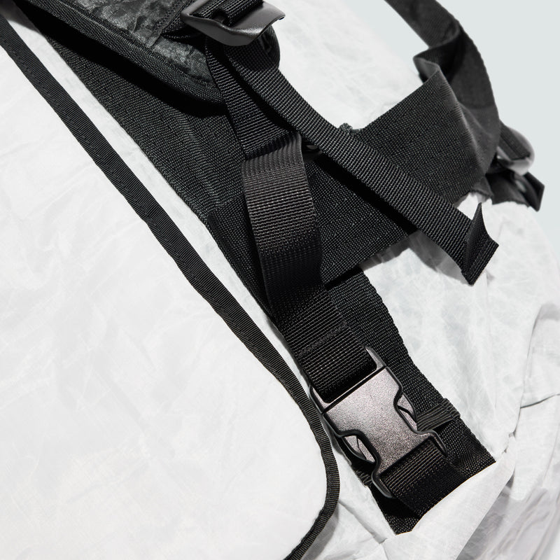 Bretelles de sac à dos amovibles et ergonomiques - Rembourrées et amovibles, les bretelles permettent d’utiliser le sac duffel à titre de sac à dos. Les bretelles du sac sont munies d’une sangle de poitrine règlable avec sifflet intégré. L’utilisation d’une seule bretelle attachée en diagonal rend possible le mode bandoulière.