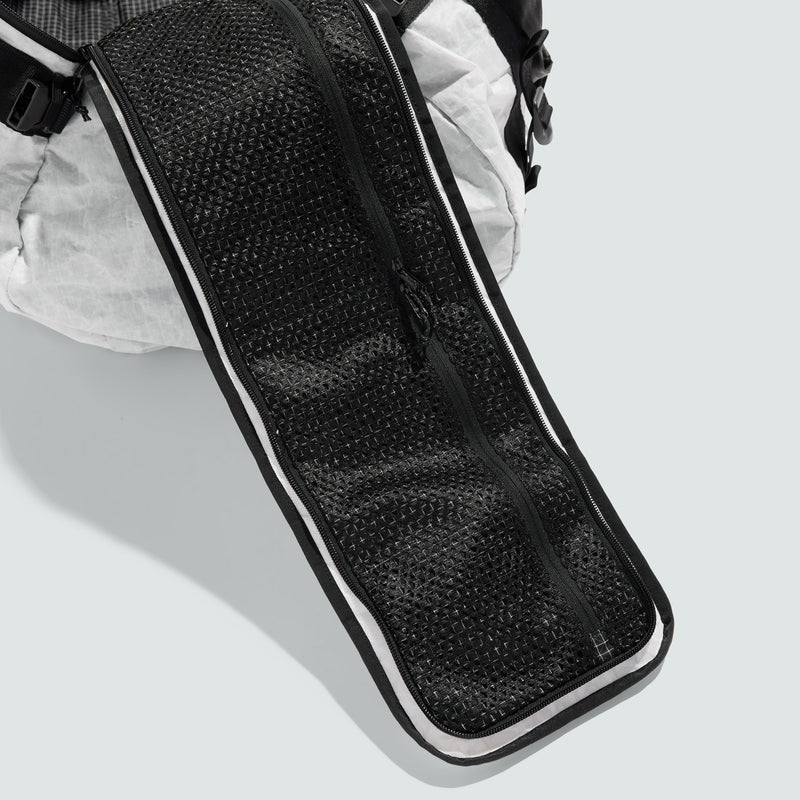 Rangement et organisation robustes - Les deux extrémités du coffre à outils sont dotés de poches dissimulées. Ces poches s'ouvrent et se ferment en tirant l'étiquette du sac vers le haut pour faciliter l'accès et la manipulation de la fermeture éclair. Elles sont doublées en filet de façon à favoriser une respirabilité maximale en plus d’offrirun accès rapide. Sous l'ouverture supérieure se trouve un système de pochettes en filet comprenant deux espaces de rangement séparés et zippés. Sur chaque paroi latérale intérieure du compartiment principal se trouve une poche en filet avec un ourlet d’ouverture. Ces poches permettent de séparer et d'organiser de manière créative certains items de l'espace de rangement intérieur principal.