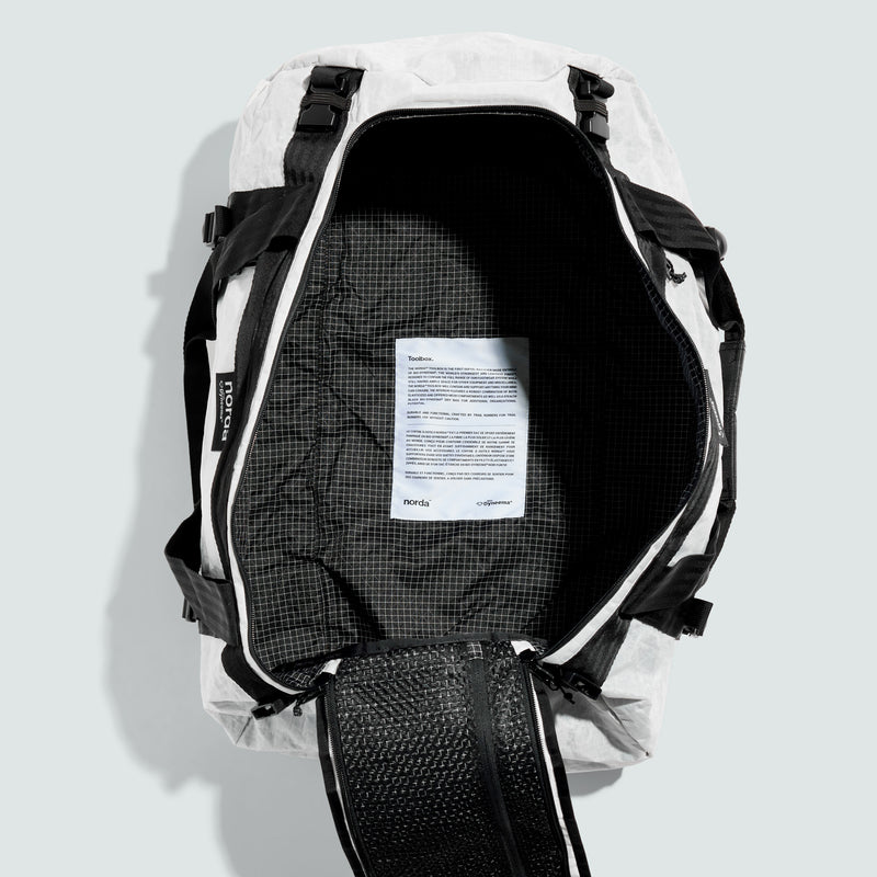 Nous avons conçu le sac duffel le plus durable et fonctionnel pour les courreurs de sentier. Le coffre à outils norda™ est le premier sac de sport entièrement fabriqué en Dyneema®, la fibre la plus solide et la plus légère au monde. À utiliser sans précautions.