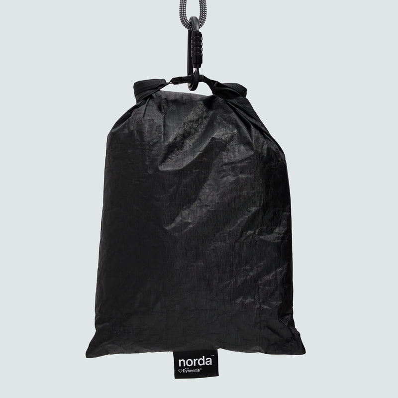 Sac de rangement en Dyneema® noir furtif - Le coffre à outils norda™ est équipé d’un sac étanche en Bio-Dyneema® noir furtif, ouvrant la voie à un potentiel de rangement et d'organisation supplémentaire.
