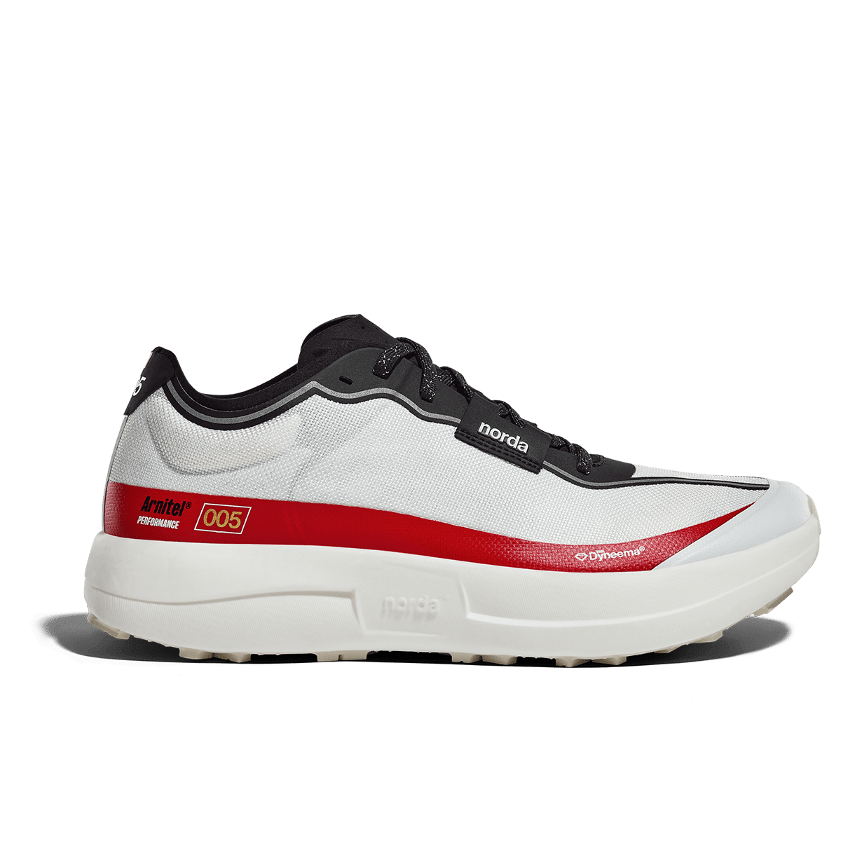The 005 features a custom Vibram® outsole developed exclusively with norda.